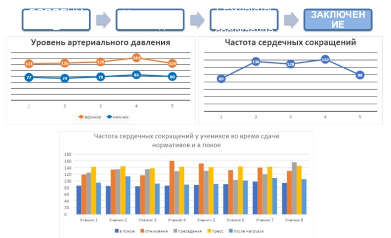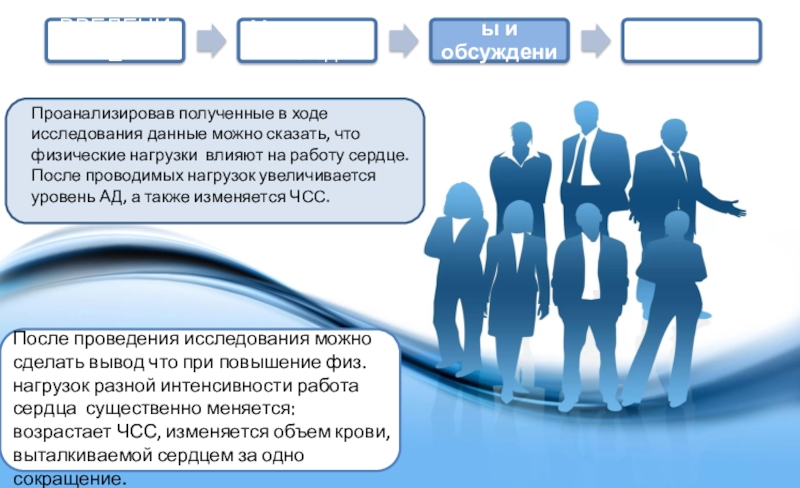 После проведения исследования можно сделать вывод что при повышение физ.нагрузок разной интенсивности работа сердца существенно меняется: возрастает ЧСС, изменяется объем крови, выталкиваемой сердцем за одно сокращение.