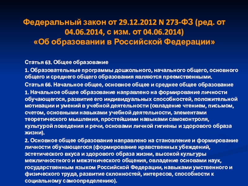 Федеральный закон от 29.12.2012 N 273-ФЗ (ред. от 04.06.2014, с изм. от 04.06.2014)