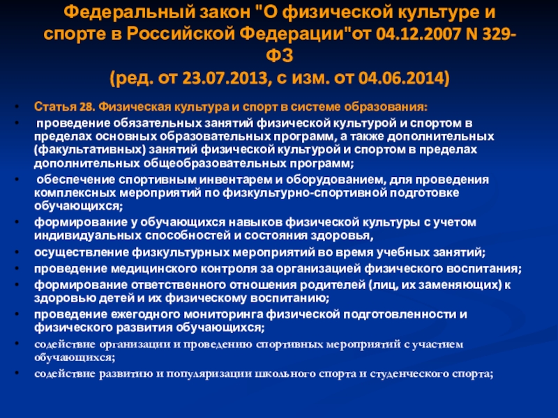 Федеральный закон "О физической культуре и спорте в Российской Федерации"от 04.12.2007 N 329-ФЗ