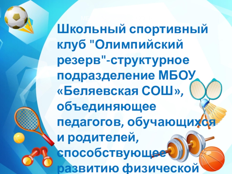 Школьный спортивный клуб "Олимпийский резерв"-структурное подразделение МБОУ «Беляевская СОШ»,