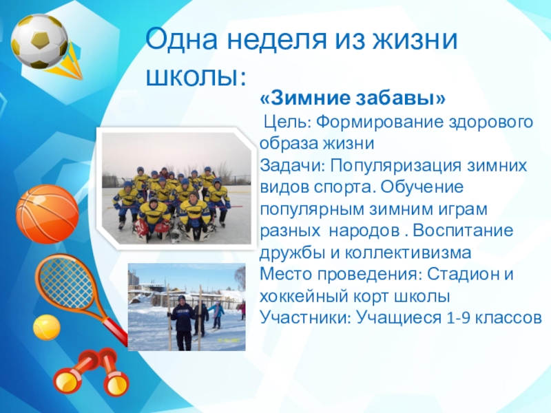 Задачи: Популяризация зимних видов спорта. Обучение популярным зимним играм разных народов . Воспитание дружбы и коллективизма