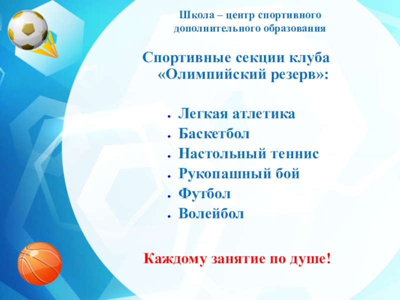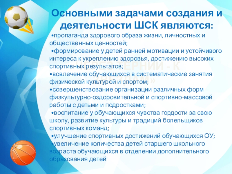 объединяющее педагогов, обучающихся и родителей, способствующее развитию физической культуры и спорта в школе.