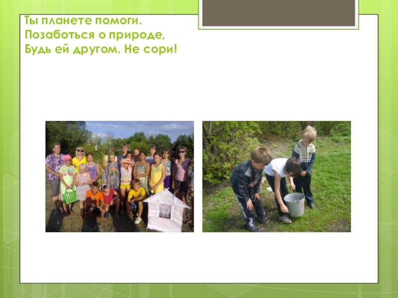 Слайд 12 Ты планете помоги. Позаботься о природе, Будь ей другом. Не сори!