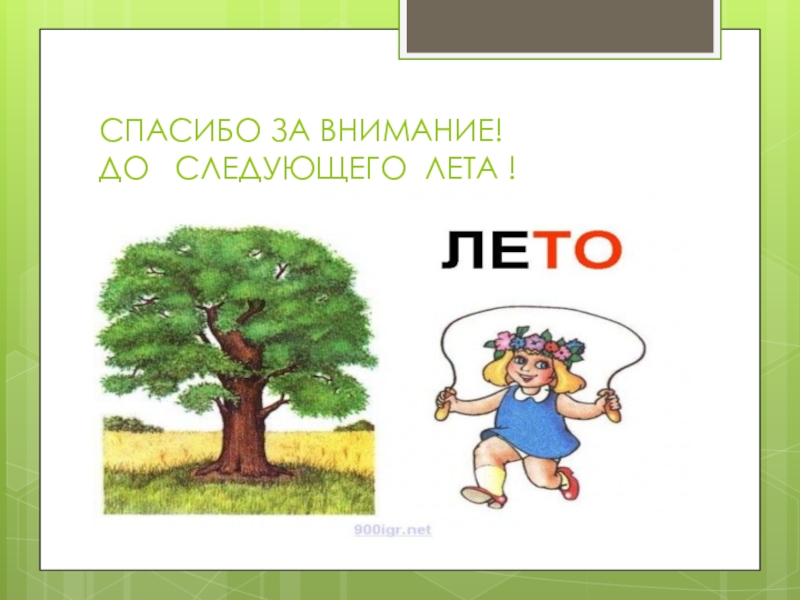 Слайд 17СПАСИБО ЗА ВНИМАНИЕ! ДО СЛЕДУЮЩЕГО ЛЕТА !