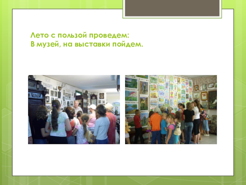 Слайд 8Лето с пользой проведем: В музей, на выставки пойдем.