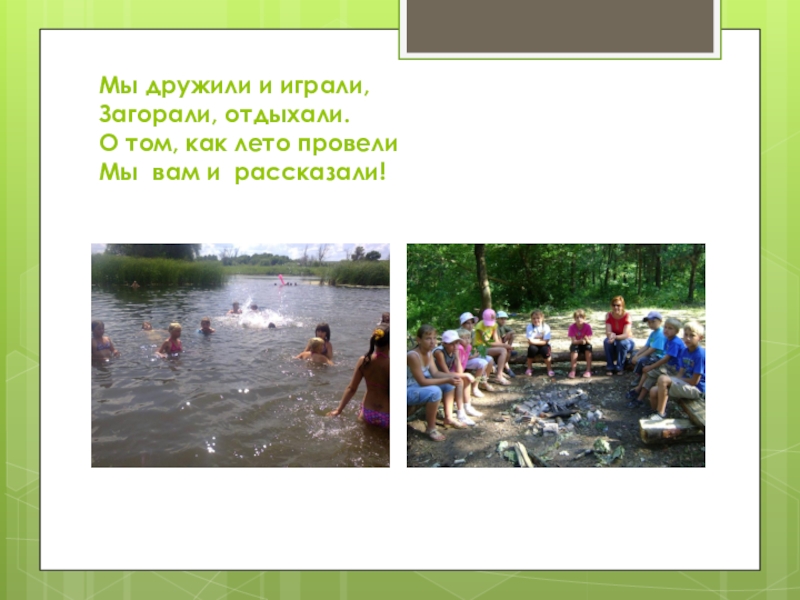 Слайд 16Мы дружили и играли, Загорали, отдыхали. О том, как лето провели Мы вам и