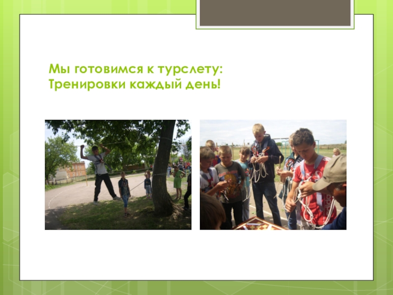 Слайд 4Мы готовимся к турслету: Тренировки каждый день!