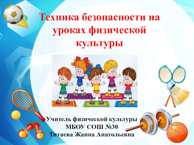 Техника безопасности на уроках физической культурыУчитель физической культуры МБОУ СОШ №30Титаева Жанна Анатольевна