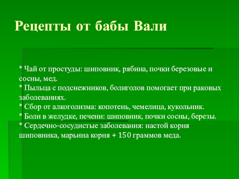2. Записать советы Мукановой В.И. по сбору лекарственных трав и лечебные рецепты