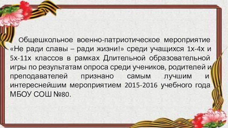 в рамках длительной образовательной игры, посвященной уроженцам и жителям Иркутской области, участникам Великой Отечественной войны и празднованию великого Дня Победы