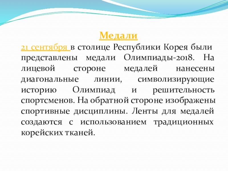 21 сентября в столице Республики Корея были представлены медали Олимпиады-2018. На