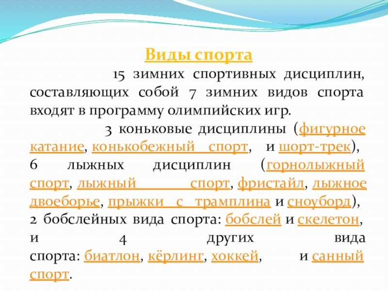 собой 7 зимних видов спорта входят в программу олимпийских игр.