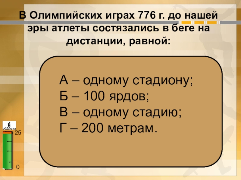 В Олимпийских играх 776 г. до нашей эры атлеты состязались в