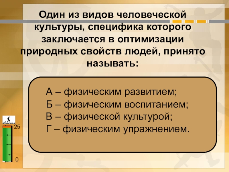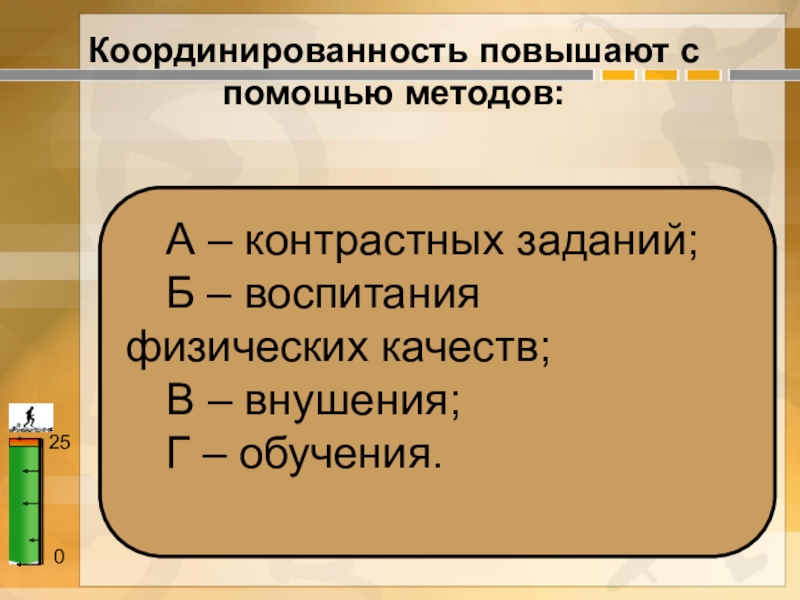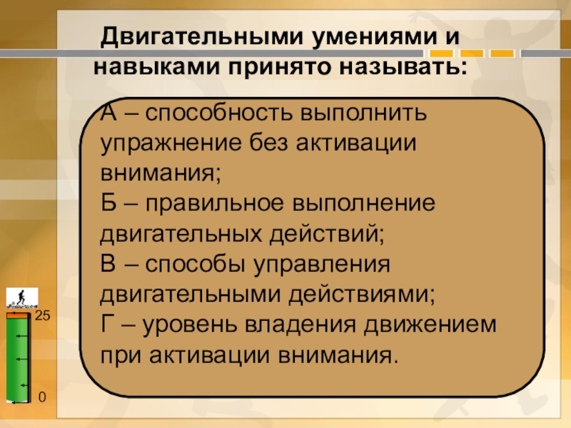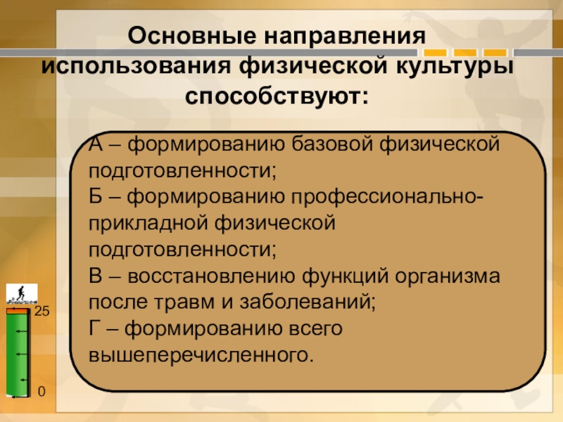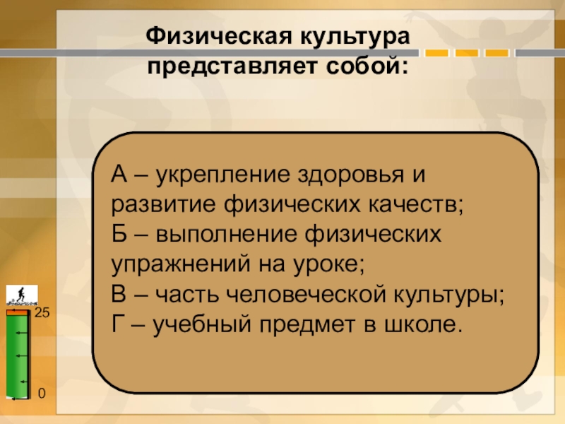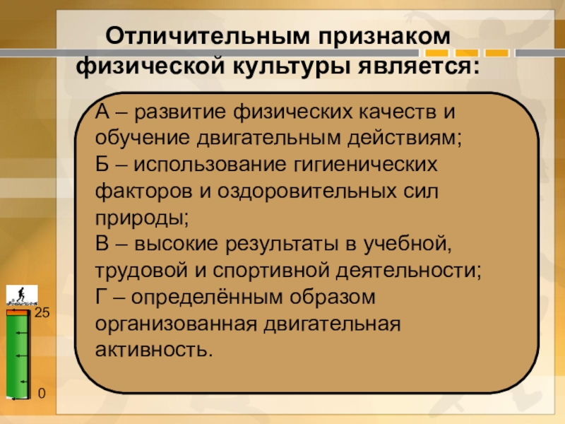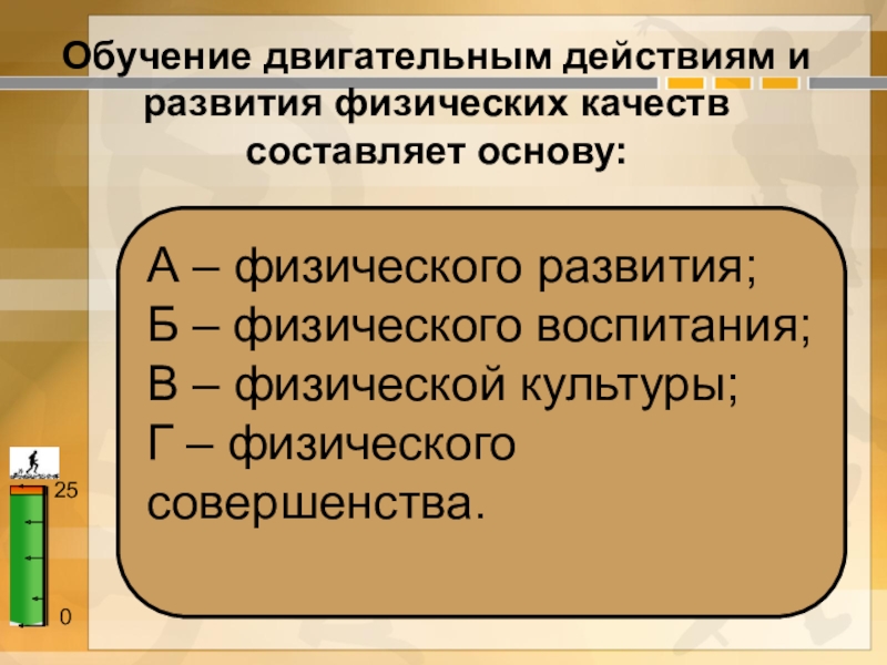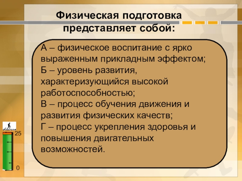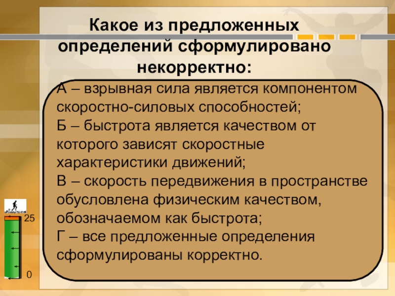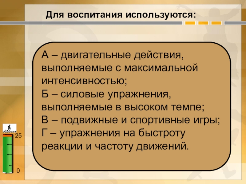 Б – быстрота является качеством от которого зависят скоростные характеристики движений;