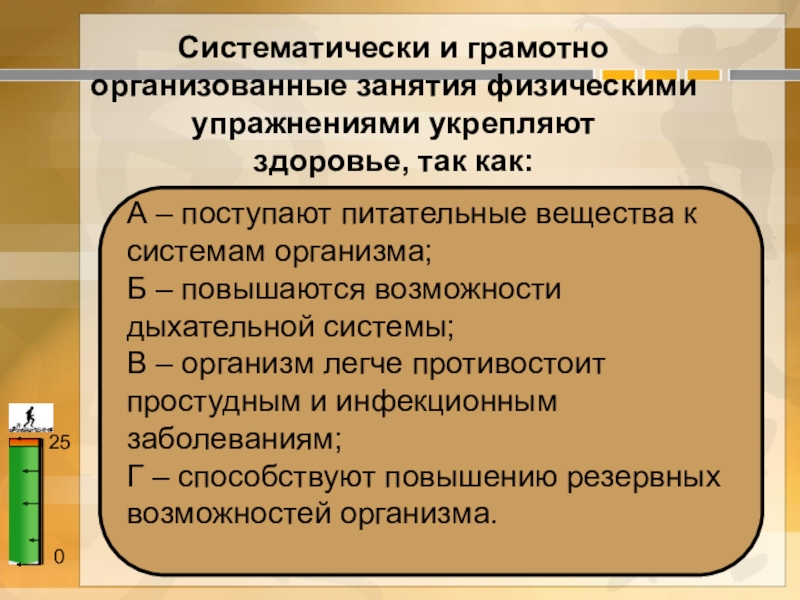 Систематически и грамотно организованные занятия физическими упражнениями укрепляют