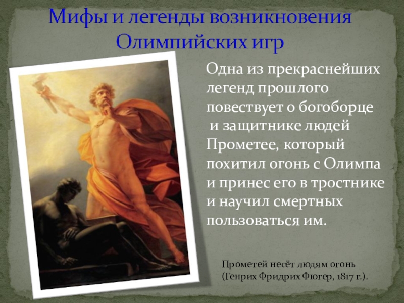 Прометей несёт людям огонь (Генрих Фридрих Фюгер, 1817 г.).