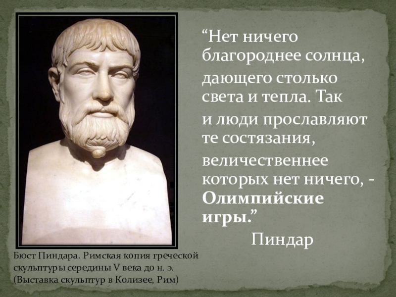 Бюст Пиндара. Римская копия греческой скульптуры середины V века до н. э. (Выставка скульптур в Колизее, Рим)