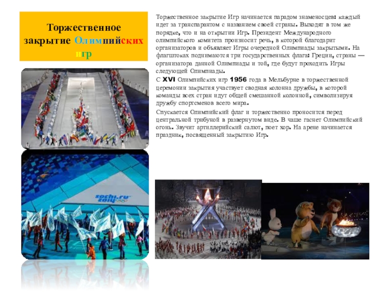 Слайд 10Торжественное закрытие Олимпийских игр