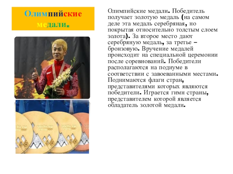 Слайд 8Олимпийские медали.