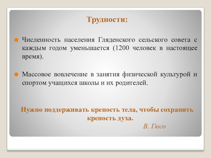 Численность населения Гляденского сельского совета с каждым годом уменьшается (1200 человек