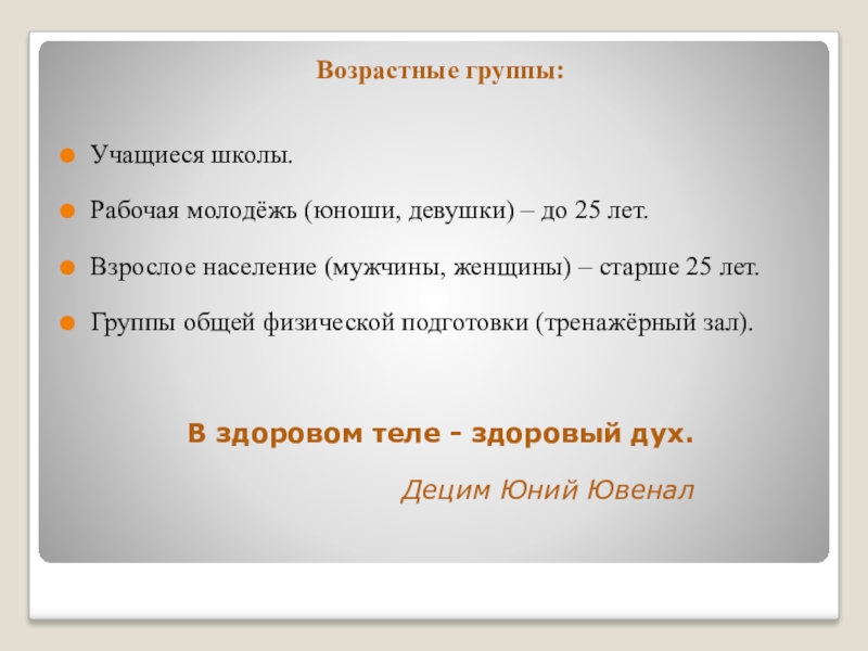 Слайд 6Возрастные группы: