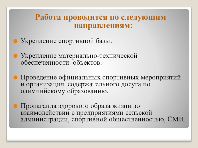 Слайд 8Работа проводится по следующим направлениям: