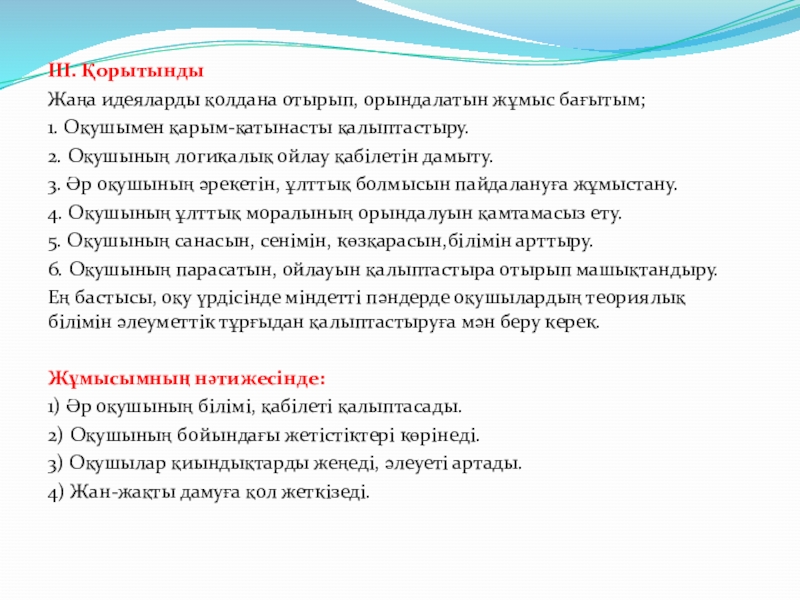 1) Әр оқушының білімі, қабілеті қалыптасады.