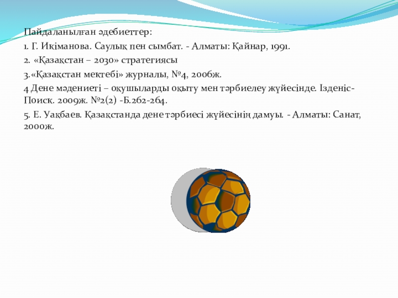 5. Е. Уақбаев. Қазақстанда дене тәрбиесі жүйесінің дамуы. - Алматы: Санат, 2000ж.