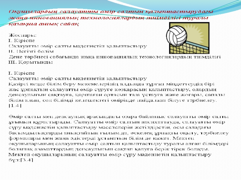 Оқушылардың салауатты өмір салтын қалыптастырудағы жаңа инновациялық технологиялардың тиімділігі туралы қазақша