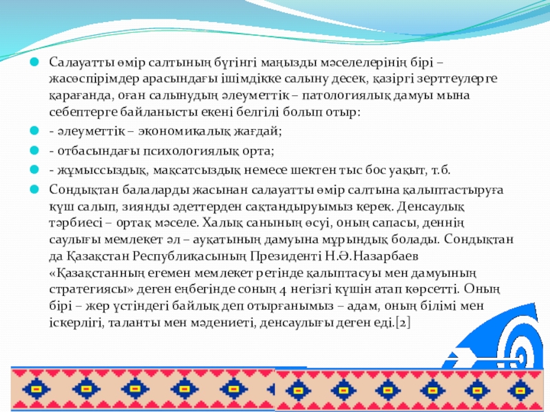 Салауатты өмір салтының бүгінгі маңызды мәселелерінің бірі – жасөспірімдер арасындағы ішімдікке