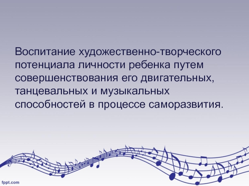 Слайд 17Воспитание художественно-творческого потенциала личности ребенка путем совершенствования его двигательных, танцевальных и