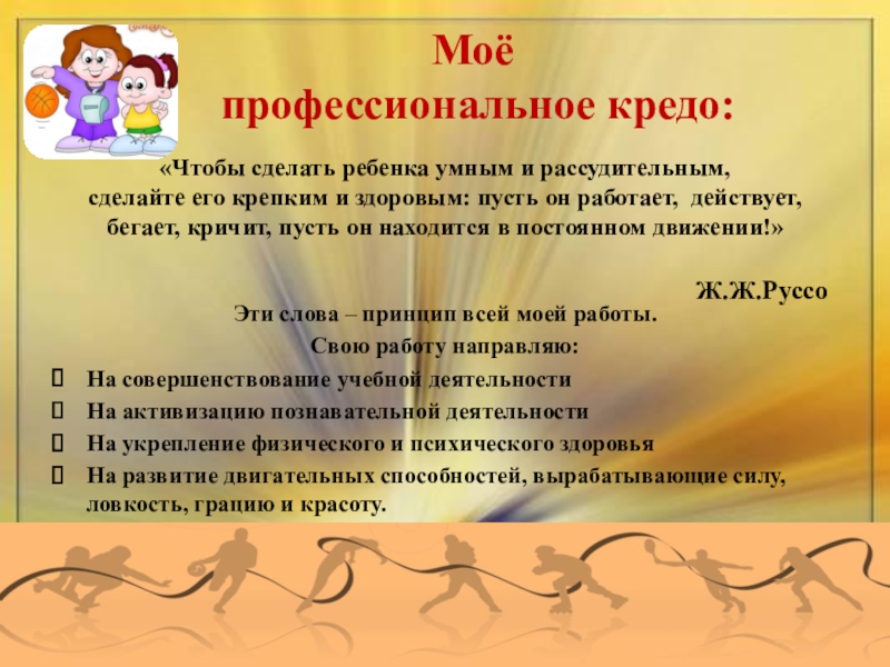 На развитие двигательных способностей, вырабатывающие силу, ловкость, грацию и красоту.
