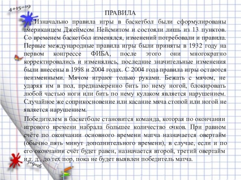 Когда создали баскетбол, в правилах значилось всего 13 пунктов. Сейчас это количество превышает 200.
