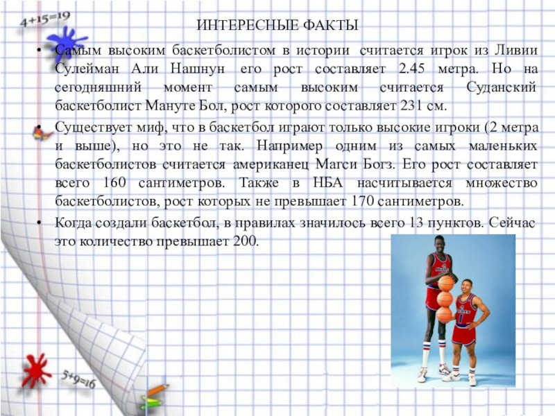 Самым высоким баскетболистом в истории считается игрок из Ливии Сулейман