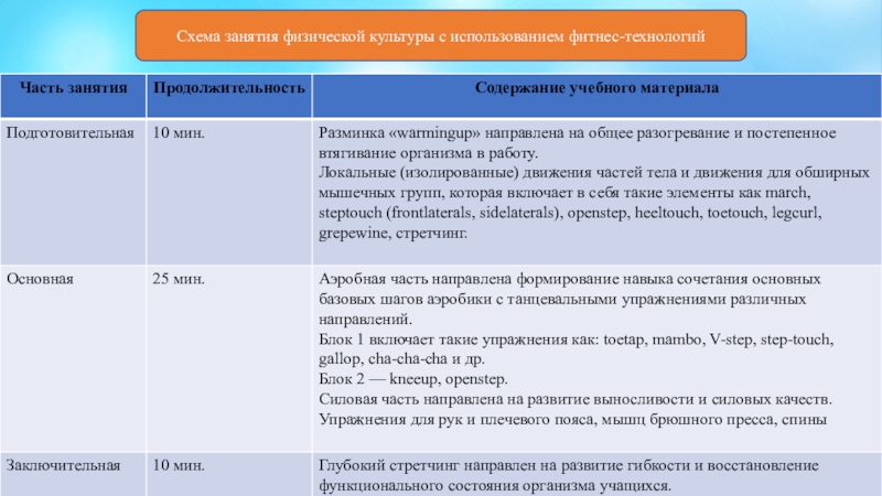 Слайд 12Схема занятия физической культуры с использованием фитнес-технологий