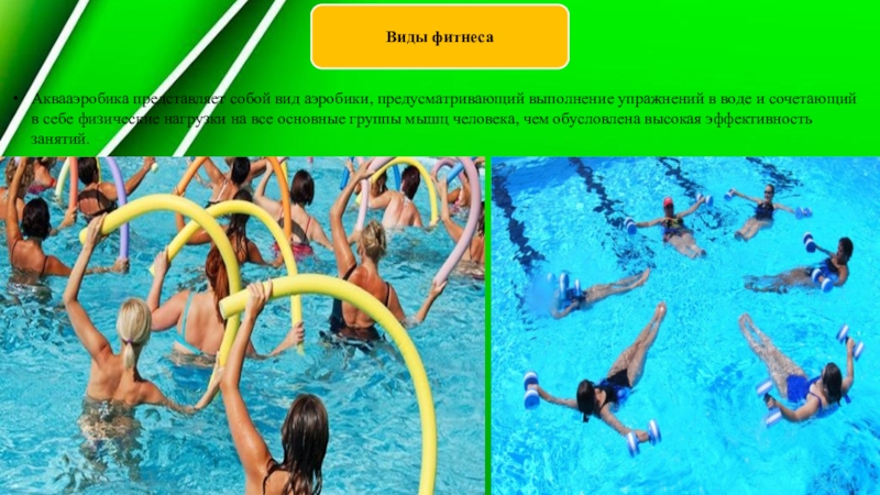 Аквааэробика представляет собой вид аэробики, предусматривающий выполнение упражнений в