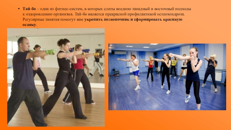 Слайд 7Тай-бо – одна из фитнес-систем, в которых слиты воедино западный и