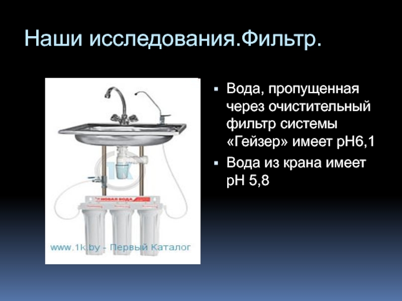 Вода, пропущенная через очистительный фильтр системы «Гейзер» имеет рН6,1