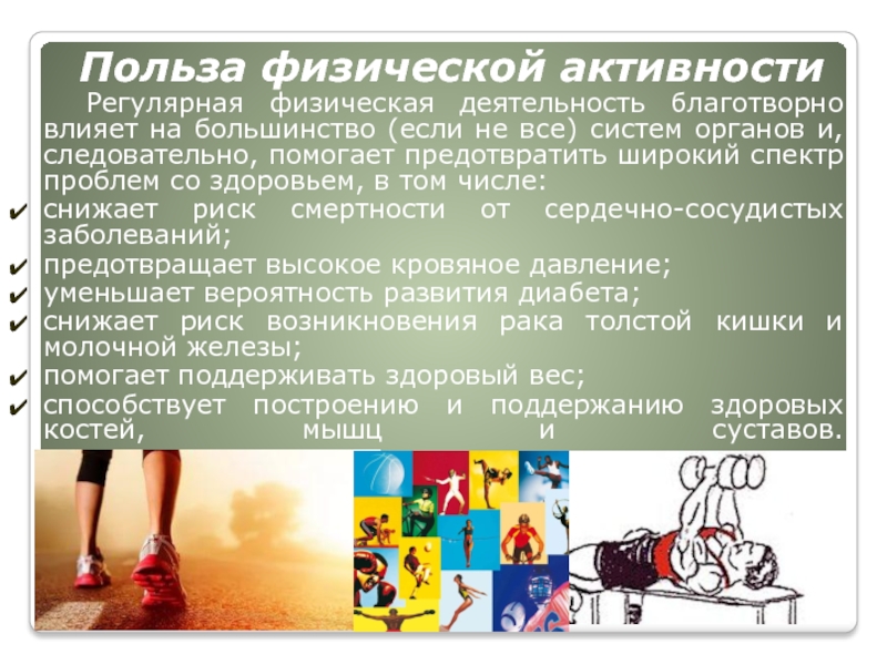 Слайд 11Польза физической активности