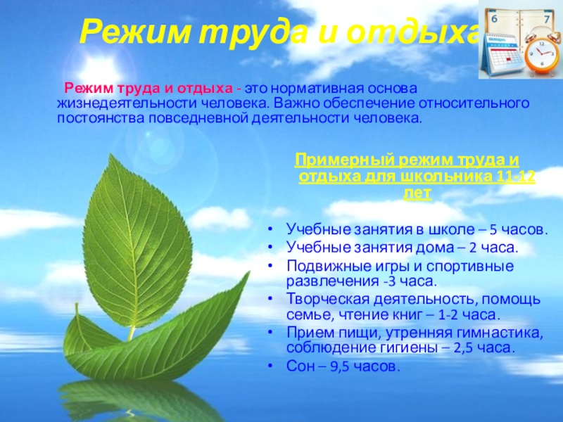 Примерный режим труда и отдыха для школьника 11-12 лет