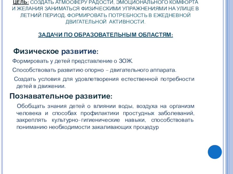Обобщать знания детей о влиянии воды, воздуха на организм человека и способах профилактики простудных заболеваний, закреплять культурно-гигиенические навыки, способствовать пониманию необходимости закаливающих процедур