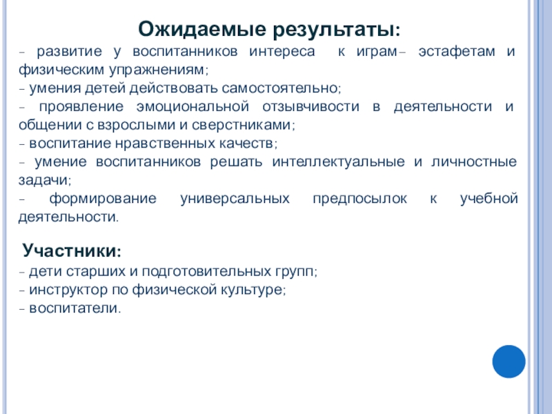 Создать условия для проявления творческих способностей в музыкальной, спортивной, игровой деятельности