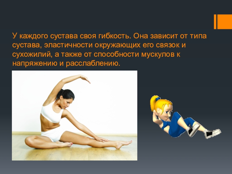 7) Возраст и пол. (С возрастом гибкость, как правило, теряется. Женщины обладают большей гибкостью, нежели мужчины.)
