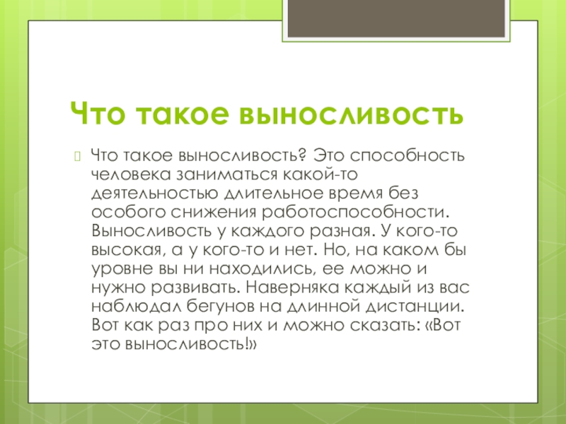Слайд 4Что такое выносливость