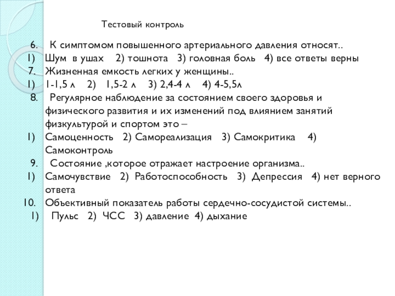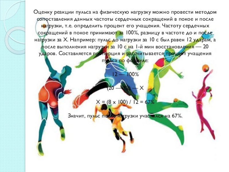 Слайд 10Оценку реакции пульса на физическую нагрузку можно провести методом сопоставления данных