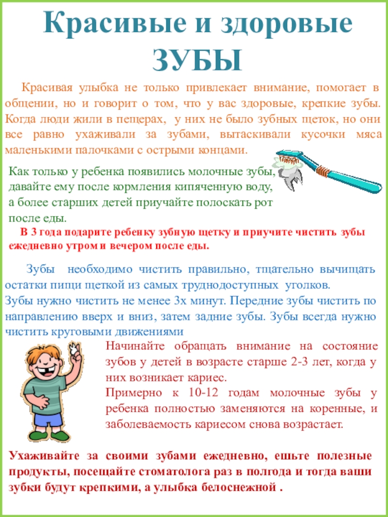 В 3 года подарите ребенку зубную щетку и приучите чистить зубы ежедневно утром и вечером после еды.