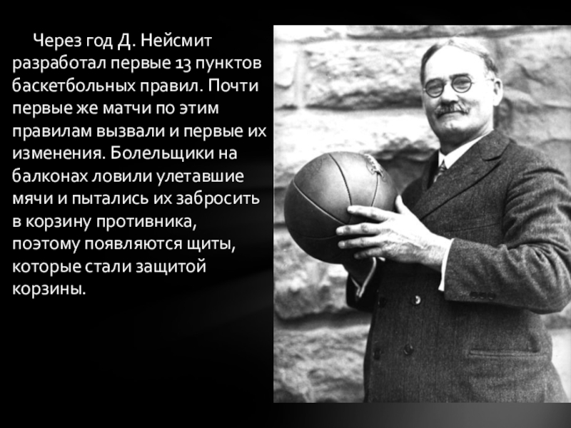 Слайд 3 Через год Д. Нейсмит разработал первые 13 пунктов