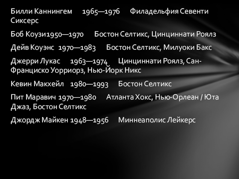 Слайд 16Билли Каннингем 1965—1976 Филадельфия Севенти Сиксерс