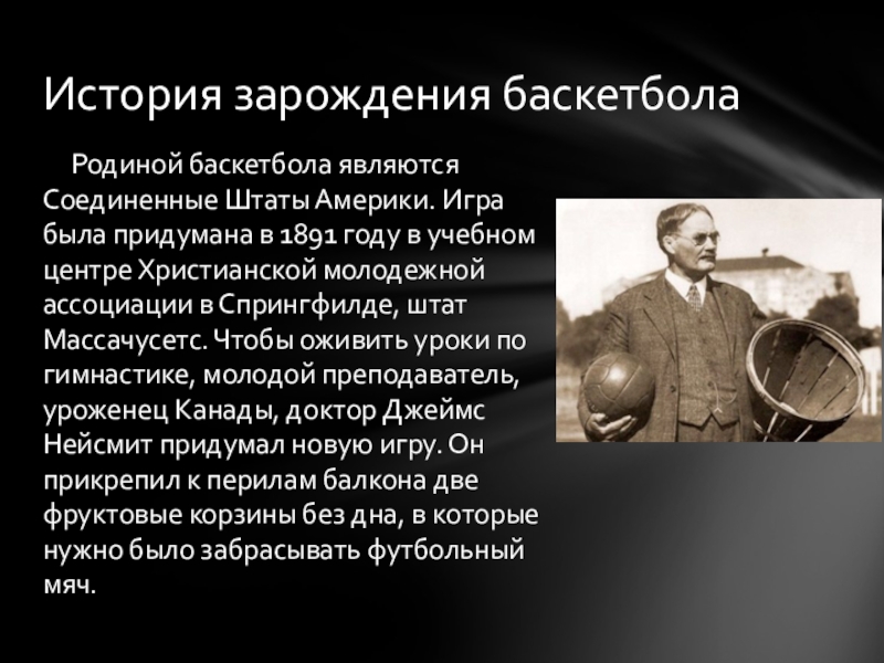 Слайд 2 Родиной баскетбола являются Соединенные Штаты Америки. Игра была