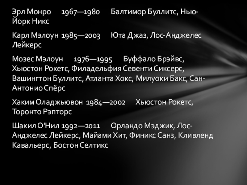 Слайд 17Эрл Монро 1967—1980 Балтимор Буллитс, Нью-Йорк Никс